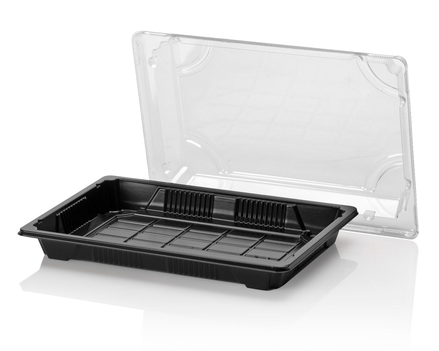 PS Sushi tray black 185x128,5x21,5 + OPS lid TRP combi